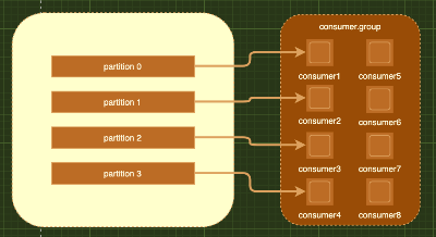 위의 그림을 살펴보자. case 1은 하나의 topic에 4개의 partition이 존재한다. 그리고 두 개의 consumer가 join된 그룹에서 해당 topic을 구독하고 있다. partition들을 모두 소비해야하므로 하나의 consumer가 partition을 두개 씩 할당 받아 메시지를 소비하게된다. 이 때 특정 consumer가 특정 partition만을 소비할 수 있도록 할 수 있지만 일반적인 rebalancing 알고리즘은 round robin으로 균형을 맞춘다. (rebalancing이 발생할 경우 모든 consumer가 메시지 소비를 중단하므로 rebalancing이 자주 일어나게 해서는 안된다.)case 1의 상황에서 메시지 소비 속도가 메시지 발행 속도보다 뒤쳐진다면 case 2처럼 consumer를 scale out 하여 처리량을 높일 수 있다. consumer를 무한정 scale out한다고해서 처리량이 높아지는 것은 아니다. case 3 처럼 consumer를 늘려도 partition은 하나의 consumer에서만 소비되므로 4개의 consumer는 대기 상태로 있게된다. 4개의 consumer도 활성화 시키려면 partition수를 8개로 늘려주면 된다. 하지만 partition수는 늘리기만 가능하고, 줄일 수 없기 때문에 partition 수는 신중하게 조절해야한다.