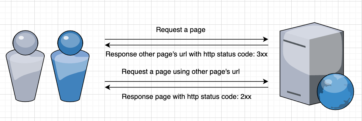 Redirect는 방문자를 다른 페이지로 자동으로 보내주는 페이지이다. 그림으로 Redirect의 동작 방식을 표현한다면 다음과 같을 것 입니다.
